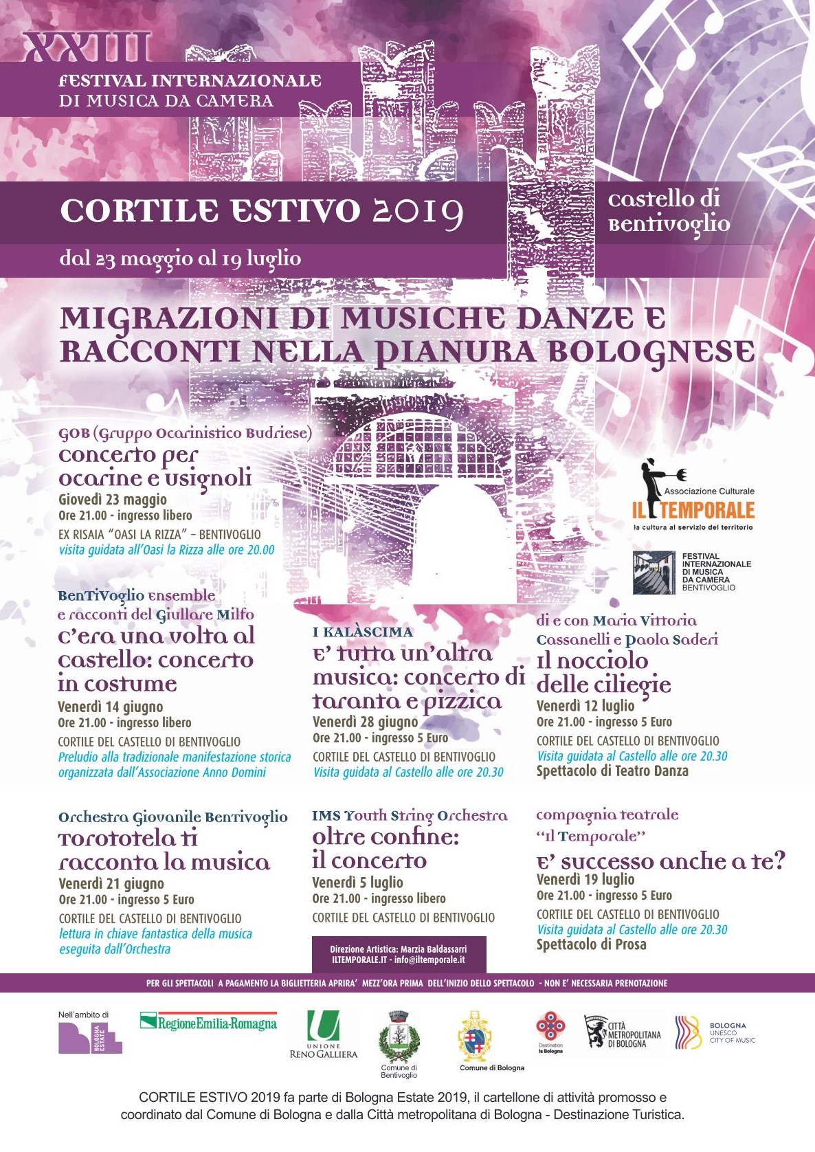 Il Cortile Estivo rappresenta il preludio al “23° Festival di Musica da Camera Castello di Bentivoglio” che  si svolgerà all’interno delle sale del Castello nel periodo Settembre/Dicembre 2019.