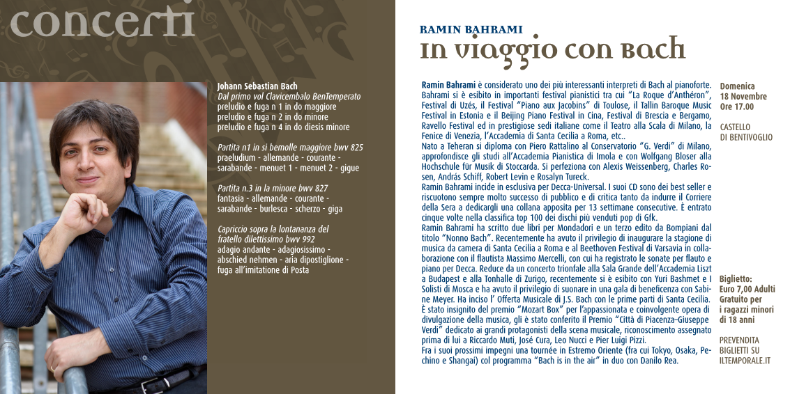 Domenica 18 Novembre alle ore 17.00 nell’ambito del XXII Festival di musica da camera suonerà per noi Ramin Bahrami, oggi conisderato tra i maggiori interpreti di Bach a livello internazionale.