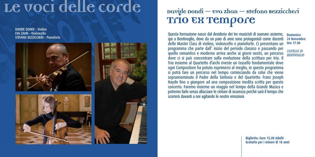 Vi aspettiamo Domenica 24 Novembre con un concerto classico eseguito da un trio ex tempore d’eccellenza.