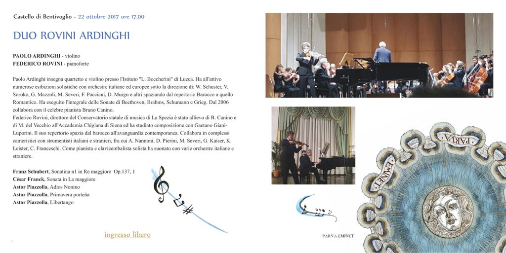 PAOLO ARDINGHI - violino FEDERICO ROVINI- pianoforte Franz Schubert , Sonatina n.1 in Re maggiore Op.137, 1 César Franck, Sonata in La maggiore Astor Piazzolla, Adios Nonino Astor Piazzolla, Primavera portena Astor Piazzolla, Libertango![]()