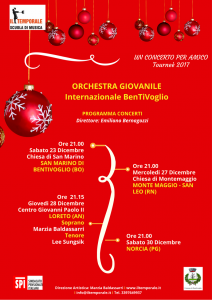 Inauguriamo Sabato 23 Dicembre alle ore 21.00 presso la Chiesa di San Marino di Bentivoglio con il tradizionale concerto di Natale la Toruneè Invernale dell’Orchestra Giovanile BenTiVoglio.