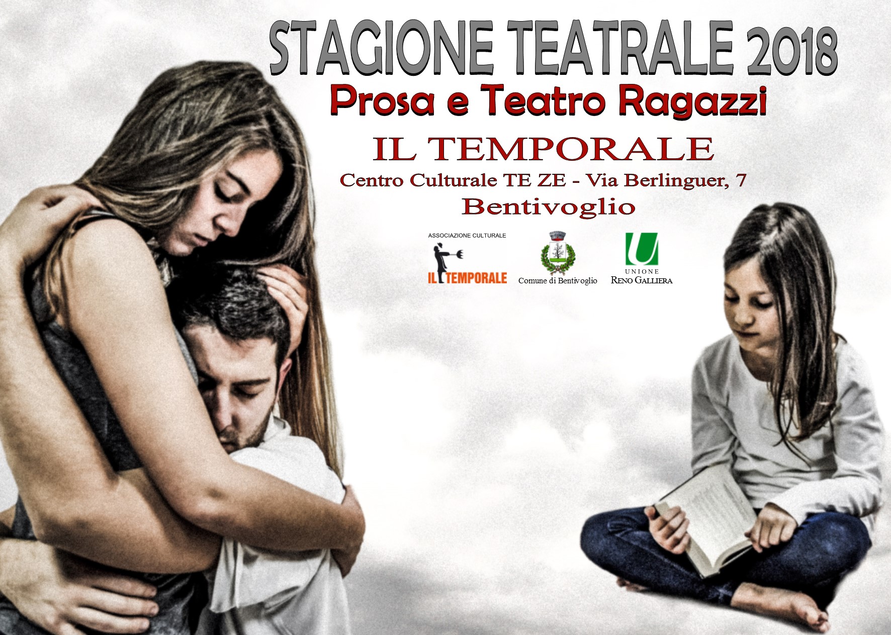 L’associazione culturale “Il Temporale” presenta la sua nuova stagione teatrale, da gennaio a maggio 2018, nove spettacoli divisi tra la stagione di Prosa e quella di Teatro Ragazzi, ogni ultimo weekend del mese, con il Patrocinio e il contributo del Comune di Bentivoglio e dell’Unione Reno Galliera e la direzione artistica di Fabrizia Lotta. Un’offerta e una qualità artistica professionale e diversificata nei suoi generi in modo da accontentare un pubblico che cerca e vuole vedere cose diverse ma, allo stesso tempo, unire in una sola platea adulti e bambini.