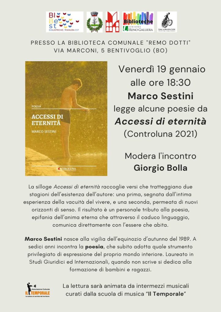 Secondo incontro con autore del 2024 Il 19 gennaio alle 18:30 Marco Sestini presenterà la sua raccolta di poesie “Accessi di eternità” Dialogherà con l’autore Giorgio Bolla La presentazione sarà […]